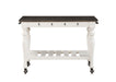 Classic farmhouse styling updated for today's dining. Turned legs and pilasters combine with cup pulls to create a look that is both new and vintage. The Joanna Server Cart is both stylish and functional with hooks for hanging, handles for towels and for use as a push bar and slatted bottom shelf for additional storage. A two-tone ivory and mocha finish complements many decors
