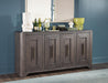 Lancia is the perfect blend of traditional charm and modern sophistication. This collection features a rich Charred Oak finish, crafted from Select Hardwood Solids and Oak veneers. The Hammered Gold Hardware adds a touch of luxury. Framed drawer fronts add dimension and depth while rounded pilasters soften the look. Stone tops are offered on select pieces for added durability and style.