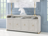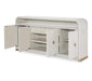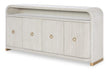 Approachable glamour. That's the look of the Miramar Total Home Collection from Legacy Classic - Modern. The collection features and acrylic accents bold fluting detail and waterfall edges. The accent finish is used in banding on case bases and foot rails table bases and on the posters of the Canopy Bed and low-post bed.