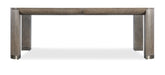 Inspired by decades of design movements with an unmistakably modern aesthetic that transcends time, the Modern Mood Leg Dining Table is a striking, softly sophisticated profile. Featuring a rounded table apron and corners, matched veneers on the top and metal banding accents on the legs in a warm pewter finish, it is crafted of Quartered Oak Veneers in a Diamond Finish with crystal-like alabaster hues. With one 24-inch leaf, the table extends up to 110 inches long.