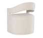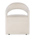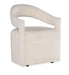 Cozy chic is married to a clean modern profile with the Modern Mood Upholstered Arm Chair, featuring a comfortable fully upholstered seat and arms with a rounded open back. The versatile chair moves easily from place to place on casters and is upholstered in the Inverness Natural boucle fabric.