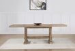 A grandly scaled dining table with modern farmhouse styling, the Napa Counter Dining Table offers ample room for all visitors. This plank-effect table comes with two 18-inch leaves that expand the table to a full 108 inches to seat up to 10 people. The twin pedestal table features details like exposed tenons to give a rustic feel that works well with casual environments.