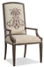 Celebrate gracious living with the romantic Rhapsody arm chair adorned with a unique and exquisite embroidered insignia pattern on the front and back. The walnut-colored finish with a rustic reclaimed appearance, paired with the soft upholstery in a creamy Aurora Ecru color creates a serene neutral color palette to add relaxation to your gatherings around the table or in the family room.