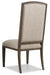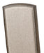 Celebrate gracious living with the romantic Rhapsody side chair. The walnut-colored finish with a rustic reclaimed appearance, paired with the soft upholstery in a creamy Aurora Ecru color, creates a serene neutral color palette to add relaxation to your gatherings around the table or in the family room.