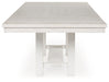 | Details | Made with rubberwood solids, ash veneer and MDF substrates, Antiqued white finish with grain texture, Tabletop with planked effect, Two 12" removable center leaves, Table extends to 86" overall by pulling both ends and dropping in leaves, Seats up to 8, Assembly required | |