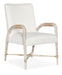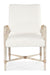Laidback and inviting, the Serenity Arm Chair brings the relaxed aura of the outside in. With a comfortable seat and back covered in the Macrame Artic fabric, the arm chair is crafted of Beech Wood with rope-wrapped arms and a stylish X stretcher base. The light and airy Surf finish is a whitewashed color.