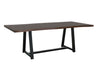Trestle Dining Table. The Walnut Collection Live Edge Dining Table is a timeless piece that combines natural elegance with modern functionality. Made from Parota wood and engineered walnut wood, this table showcases a beauty that transcends trends. Its translucent multi-step lacquer finish in a rich reddish-brown tone highlights the natural beauty and grain of the wood. The live edge on the tabletop adds a rustic and organic appearance, while the sturdy wooden base provides stability and a sleek, modern look. This dining table is a stunning centerpiece for any dining space, seamlessly blending form and function.