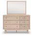 | Details | Includes dresser and mirror, Made with engineered wood (MDF/particleboard/plywood) and decorative laminate for the right balance of affordability and durability , Smooth, light finish with replicated oak grain, Decorative laminate replicates natural or man-made material surfaces with consistent color, pattern and texture , Knobs with black finish, 6 smooth-gliding drawers, Drawer interiors are lined with a faux linen laminate for a clean, finished look, Mirror attaches to back of dresser; can also be mounted on wall horizontally or vertically , Safety is a top priority, clothing storage units are designed to meet the most current standard for stability, ASTM F 2057 (ASTM International), Drawers extend out to accommodate maximum access to drawer interior while maintaining safety, Assembly required | |