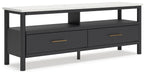 This TV stand reflects your sophisticated approach to boho style. Crafted with both form and function in mind, its replicated marble top beautifully contrasts a matte black finish. Ambient lighting and drawers for media storage make it a chic and convenient living room companion. And the versatile design suits all-neutral spaces or blends with your favorite pops of color. It’s inviting, yet posh. Luxe, yet laid-back. With this TV stand, your free-spirited vibe meets modern design.