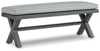 Add a distinguished touch of gray to your outdoor living space with this bench. It's made with an aluminum frame with a wood-look finish for a relaxed feel that provides seasons of enjoyment. Rest assured, the thick seat cushion is wrapped in Nuvella® high-performance fabric that’s fade-resistant, stain-resistant and a breeze to clean.