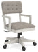 This home office desk chair is sure to impress when it’s time to study or work from home. With its antiqued white finish, cushioned seat and back covered in tufted light gray upholstery, modern farmhouse-style workstations have never been so fashionable. The adjustable seat allows you to find your sweet spot, while casters provide easy mobility. All that’s missing is you.