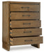 | Details | Made with hardwood solids, mango wood veneer and MDF substrate, Light wood-tone finish, 5 smooth-gliding drawers with fully finished interior, dovetail construction and heavy duty ball-bearing side glides (top drawers felt lined), Metal drawer pulls with darkened bronze-tone finish | |