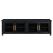 The 64-inch Yves TV Stand boasts clean lines and a modern profile, finished in sleek black with brushed brass accents. Its glass doors enable seamless remote control operation, while adjustable shelves offer versatility for electronics or display items. Designed with a low profile, the Yves effortlessly complements your viewing space, ensuring it enhances rather than dominates the room. With its steady presence and striking aesthetic, the Yves TV Stand is the perfect companion for elevating your viewing experience.