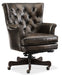 It’s the quintessential leather executive chair. The Theodore swivel tilt chair is a classic silhouette with a plush button-tufted back, modified wings and shaped rolled arms accented by nailhead trim. Theodore is upholstered in the luxurious Poetic License Tobacco aniline top grain leather, and the wood base is finished in the Natchez Brown color.
