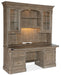 Traditional with a twist, the Sutter Computer Credenza is crafted of Cathedral Oak Veneers with a classic silhouette and a casual clear Oak finish with champagne-colored pulls and knobs. With one door on the right, the desk has one adjustable shelf and one pullout adjustable shelf behind the door. There are five drawers including the top left and right drawers with full extension metal ball bearing slides, removable pencil tray, removable writing slide and removable partitions. The left middle drawer is on full extension metal ball bearing slides and has removable inserts. Left bottom drawer is a locking file drawer with pendaflex filing system on full extension metal ball bearing slides. Center drawer has a drop-front and cutout for wire management for keyboard use. A power supply on top. Desk top area above the center drawer pulls out for added work surface.