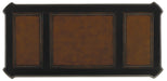 With a hunt country flair and pedigreed design details like curved legs with scroll motifs and carved leather inset panels with nail head trim, the Telluride 66-inch Writing Desk offers a stylish and functional work-from-home solution. Crafted of Cherry Veneers with leather and nail head trim, the black paint finish with reddish brown rub-through presents a rich menswear look. There’s a center drawer with drop front for the keyboard, and two utility drawers with removable dividers.