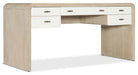 Elevate your home office with the Brixton Writing Desk, a contemporary piece that combines functionality and style. The desk features a two-tone design with pebble-hued elm veneers and contrasting ivory leathered drawer fronts. With five drawers, including a drop-front keyboard drawer and dividers for organization, it’s perfect for maintaining a tidy and productive workspace. Its elegant, curved design and durable construction make it a stunning centerpiece in any office setting.
