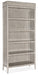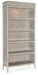 With a soft modern and casual appeal, the Burnham Bookcase is crafted of Alder Veneers with knots in a Grey Mink finish accentuated by a tactile veneer pattern on the back panel and slender tapered legs. Featuring four fixed wood-framed glass shelves, the bookcase has a puck light in the top with a 3-intensity touch switch on the right pilaster.