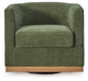 Take contemporary style for a spin with this accent chair. Handsome in a deep forest green, it adds a splash of sophistication to a reading nook or living room. The chair's handy swivel base ensures you can always find your perfect angle, while wood accent trim perfectly punctuates the look.