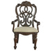 Royale evokes memories of the detail and craftsmanship of yesterday's antiques in a dining package updated for today. A warm, brown pecan-colored finish over oak and ash burl veneers combines with shaped fronts and tops to create a truly grand presentation. The Royale Arm Chair features extraordinary carving detail with extensive scrollwork and decorative medallions. The sturdy arms on this chair will make it a great choice for a Host Chair, Guest Chair or Home Office Chair.