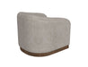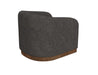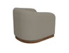 Wooden Frame & Base, Armchair. The Suomi Collection, distinguished by its flowing form, embodies the Zen-inspired Japandi style. This armchair's minimalist design is harmoniously complemented by its wooden base crafted from pine wood, with its wraparound back seamlessly merging into rounded arms, creating a cradle for an exceptionally thick and comfortable cushioned seat
