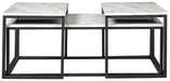 | Details | Made of decorative laminate, engineered wood and metal, Set of 3, Faux Carrera marble top and shelf, Nesting design, Tubular metal frame with black powder coated finish, Assembly required | |