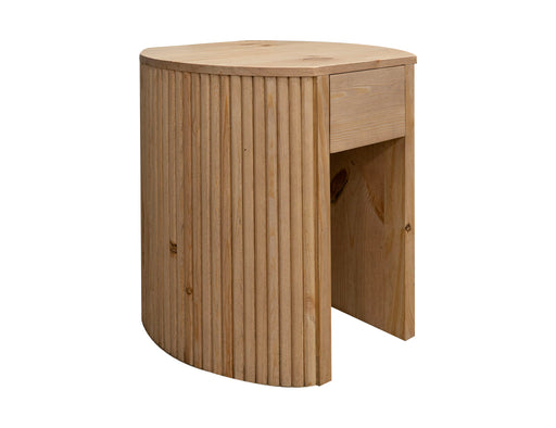 IFD Group1 Drawer Chairside Table. Drawing inspiration from ancient Egyptian architecture, the Giza collection, crafted from lightly distressed pine, pays h...