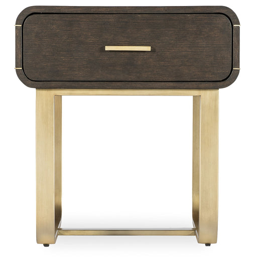 Hooker FurnishingsThe Metropolitan End Table is a soft modern silhouette combining Oak Veneers in a dark wood finish with a rounded gold metal base and accents.Produ...