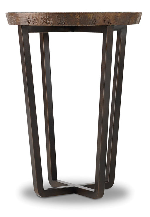 Hooker FurnishingsA compact yet sophisticated piece, this round side table features a stone top supported by a textured metal base with X-stretcher detailing. The co...
