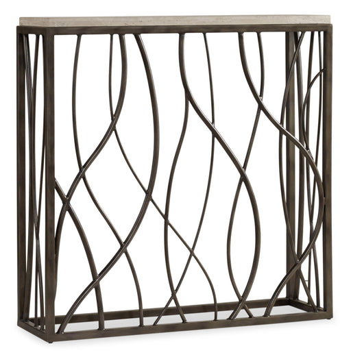Hooker FurnishingsOrganic and modern, this striking console table in a neutral color palette has a curvy steel base and natural stone top of Travertine Marble to cre...