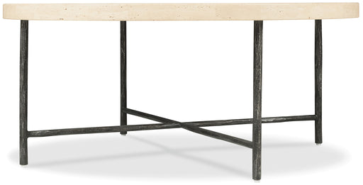 Hooker FurnishingsThis round cocktail table pairs a textured metal base with an X-stretcher and a stone top for a look that’s both industrial and elegant. The stone ...