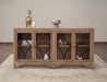 4 Door Console. Transform your living space with the elegance of the Arena collection. Meticulously crafted from solid pine wood, this exquisite collection boasts a glacier finish, inspired by the serene hues of nature, infusing your interior decor with a sense of tranquility.