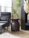 In an urn-inspired design, the Big Sky Spot Table is crafted of resin and finished in a black distressed finish with rub-through. With a round shape and ribbed accents, the space-efficient footprint of this vintage table is only 20” W x 20” D.