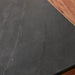 - Constructed of acacia wood solids and slate veneer with brass inlay