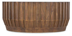 Industrial meets organic in the wide Gears Table, crafted of Mango Solids in a wood finish in a ribbed design in a gear motif.