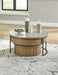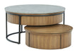 Beautiful to behold, this nesting coffee table set is loaded with style. Featuring an urban contemporary profile, the coffee table features a suspended drum design and a durable faux cement MEGA-TUFF® melamine lift top with hidden storage. Equipped with casters for easy access, the rolling trunk does double duty as serving space and storage. Perfect for mixed-use living arrangements.