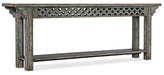 Exuding the romance and adventure of the American frontier during the great westward expansion, the Burnham Console is brimming with character. Design details include a scalloped fretwork pattern on the apron punctuated by nailhead trim, architectural brackets on the corners, chunky legs and a delightful Blue Bonnet soft blue accent finish with a rubbed patina and distressing. The base forms a generous shelf for storage or collectibles. At only 16 inches deep, this piece will bring style even to tight spaces.