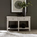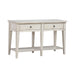 Accent your space with the casual country style Lake House sofa table. Crafted of poplar solids and oak veneers, this piece features an appealing planked top, one planked bottom shelf, two drawers for additional storage, simplistic wood and peg accents, antiqued brass knob hardware, anchored by a tapered leg design. The golden oak finish allows for a universal appeal.