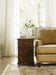Chic and classic, the three-drawer Leesburg Chairside Chest brings comfort and convenience to your living space. A compact style icon at only 15 inches wide, this piece packs a punch even for tight spaces. Crafted of Swirl Mahogany and Ebony Veneers, the chest is finished with elegant cathedral and swirl mahogany veneers with light distressing for an authentic feel. The custom-designed knobs have an antique brass color.