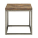 Lorenza presents rustic elegance in a set of occasional tables. This collection of cocktail, end and sofa table can be paired to fit your living space to deliver both functionality and style to any room. The fashion-forward sled style metal base pairs beautifully with the heavily distressed chevron-patterned smoky honey top to delivery a vintage feel comfortable with any casual style.