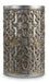 In a marriage of silver and gold, the Gia Drum Table features a dimensional interlocking gold fretwork pattern over a silver base for a glamorous chairside companion.