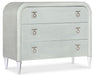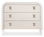 With an understated modern elegance, the Julip Accent Chest is designed with a clean silhouette, clear acrylic legs and metal accents. With a linen-wrapped exterior and drawer fronts and rounded corners, it has chrome-hued, jewelry-like metal drop pulls and three self-closing drawers.