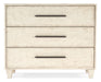 Simple and serene, the Saffron Chest is crafted of Maple Veneers with a textured cream-colored finish with cream drawer interiors, accented by antique pewter ribbed bar pulls.