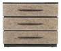 Tactile texture, organic materials and a classic black and taupe color scheme come together in the youthful yet timeless Mélange Stacked Chest. Crafted of Maple Veneers with taupe brown drawer fronts, the chest has a polished black marble top, black custom bar pulls and a black plinth base.