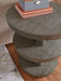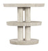 With a casual, natural, almost primitive look, the Modern Mood Round Side Table is a three-tiered design with three round columns as the base. Crafted of Oak Veneers with wire-brush detailing for a tactile appeal, the table features the Diamond Finish with crystal-like alabaster and pewter hues, delivering a soft sophistication.