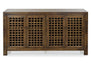 An Accent Cabinet with an heirloom feel and antique pie-safe design, the Rio 4-Door Cabinet is built for today's home accents and electronics. The 70-inch long cabinet has four adjustable shelves and lattice door fronts for semi-open display or for electronic remote use. A beautiful finish warms the room while the four adjustable shelves ensure you configure the piece exactly to your own specifications.