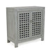 An Accent Cabinet inspired by the Pie Safes of yesterday, the Rio is designed for today's rooms with a lattice work front that easily accommodates remotes. This cabinet features a farmhouse style that will beautifully complement casual dccors with a distressed, hand-rubbed grey finish that is a neutral accent that adds pop to any room.