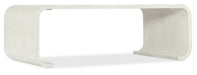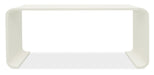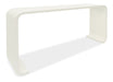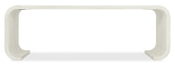 Soft, modern and organic, the Kai Table in a rounded rectangle shape is crafted of Wood and Raffia in the soothing Sand Dollar finish, a white lacquered grasscloth to create a spa-like ambience. At only 14 inches deep, this striking piece fits well even in narrow spaces.