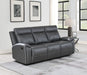 Unleash movie-night magic with the Gaston Reclining Sofa, where modern glam meets plush comfort. Picture this: popcorn in hand, loved ones gathered, laughter bouncing off sleek lines and sinking into pillowy depths. Gaston's secret? A hidden drop-down console (think convenient cupholders for every drink's desire!) that transforms from armrest to entertainment hub and back again. Crafted in a captivating shade of grey vegan leather, Gaston's not just stylish, it's built to last. No-sag springs and an engineered wood frame whisper "quality" with every recline, ensuring years of happy landings and marathon movie sessions. Gaston: your new haven for cozy elegance and endless relaxation.