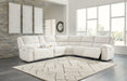 This power reclining sectional complements your contemporary cozy space. Bold block arms accentuated with form-fitting padding lend a high-style silhouette. An ample seating area invites you to sprawl during binge watches and relaxed reading hours alike. And with reclining at the press of a button, this sectional proves chic design and superb comfort go hand in hand.